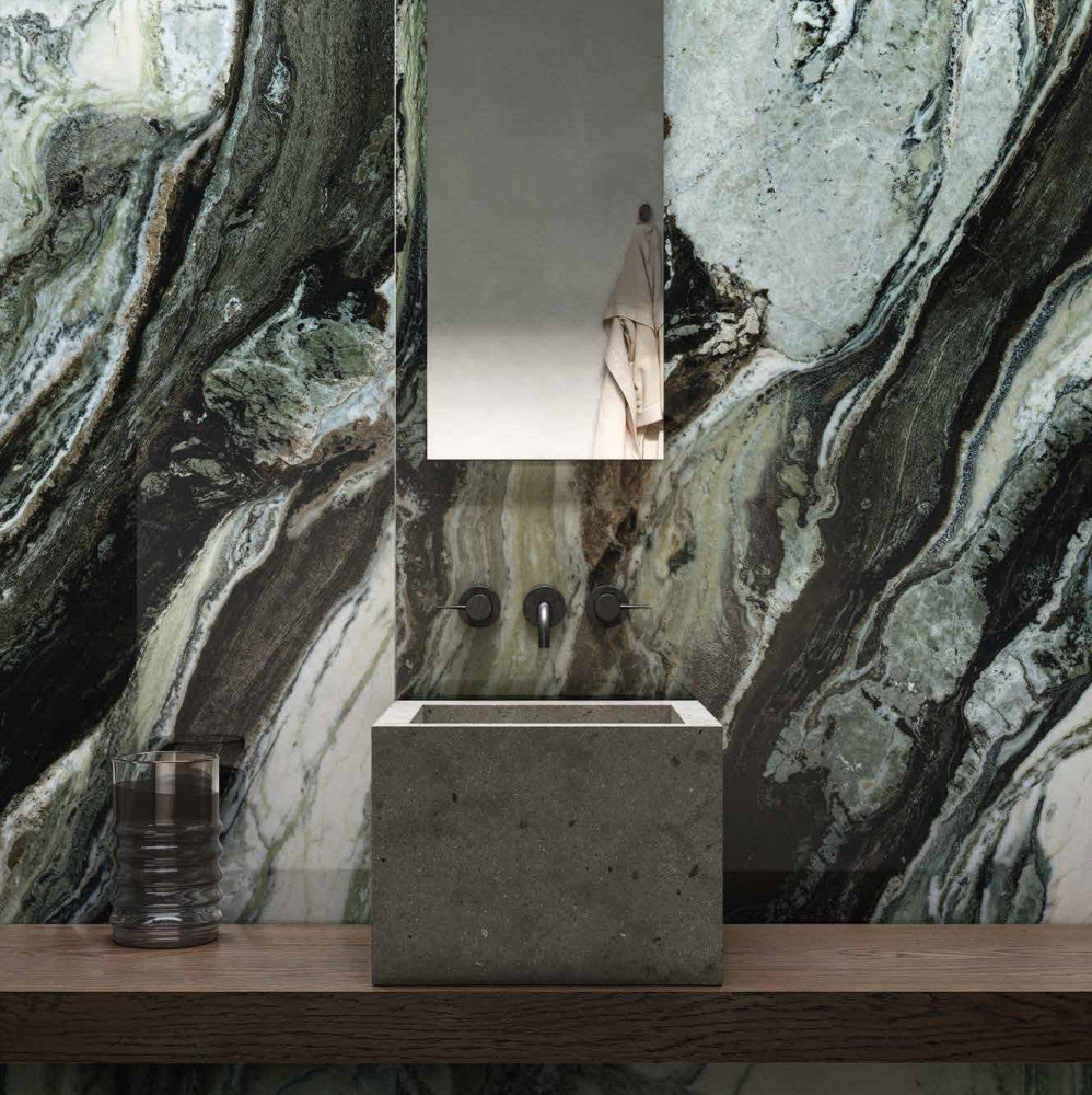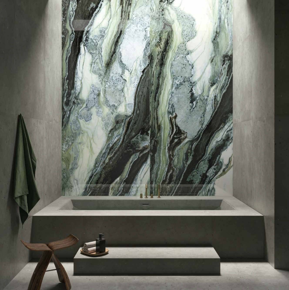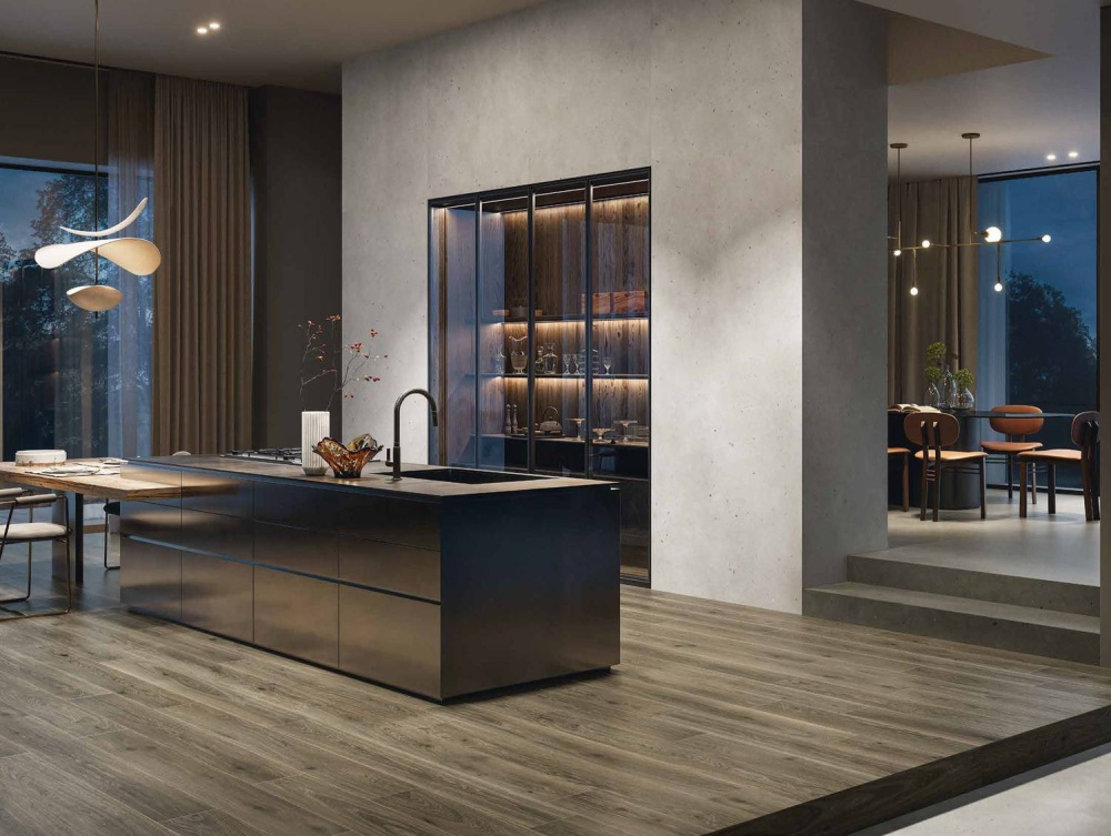 Коллекция Авангард открывает возможности для оригинальных комбинаций материалов. Керамогранит под мрамор Калакатта Ворм и Эксклюзив Грин в формате 80х160 см с патинированной поверхностью превращает индустриальный характер бетона в материал с изысканной эстетикой. Плитка под дерево Оак и Пэппер формата 20х160 см с натуральной поверхностью наполняет пространство теплом, контрастируя с холодными оттенками гаммы. Макси-формат 120x278 см толщиной 6 мм доступен в трех бетонных тонах — Пьюр, Сильвер, Блэк — и двух мраморных: Эксклюзив Грин и Калакатта Ворм.