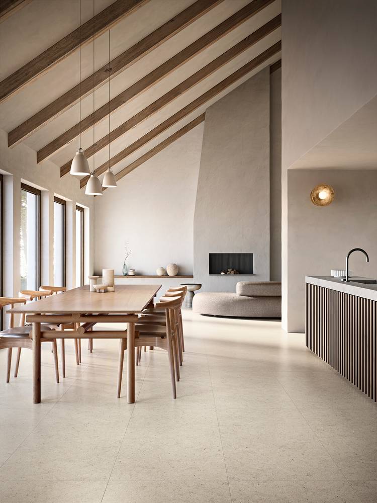 Один цвет — три разных звучания. Можно выдержать весь проект в единой фактуре или сочетать их между собой: спокойный Slim на полу, динамичный Stone на акцентной стене. Форматы 80x80 см, 60x120 см и 120x120 см поддерживают любую геометрию укладки.