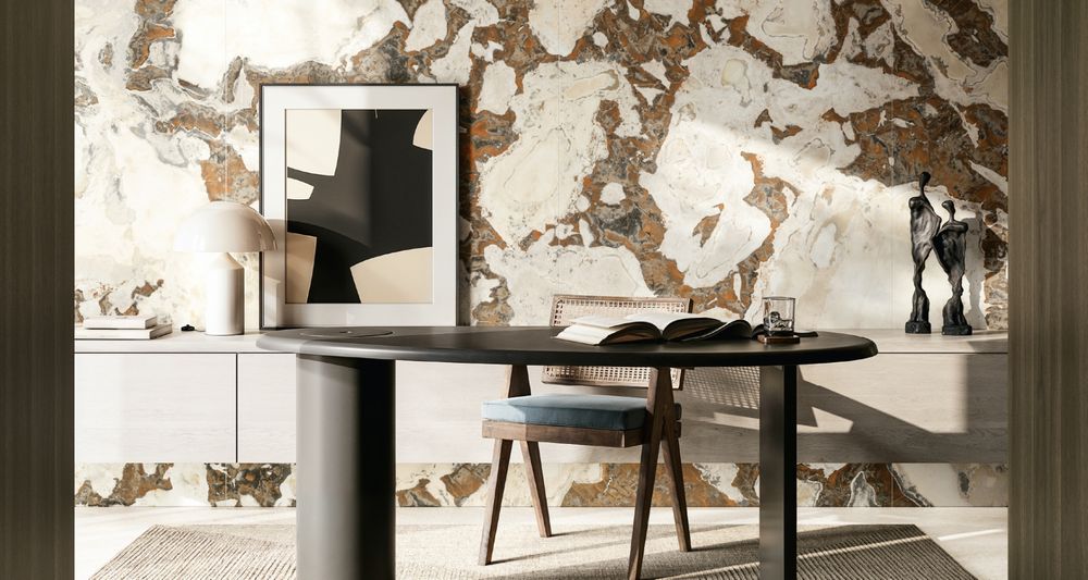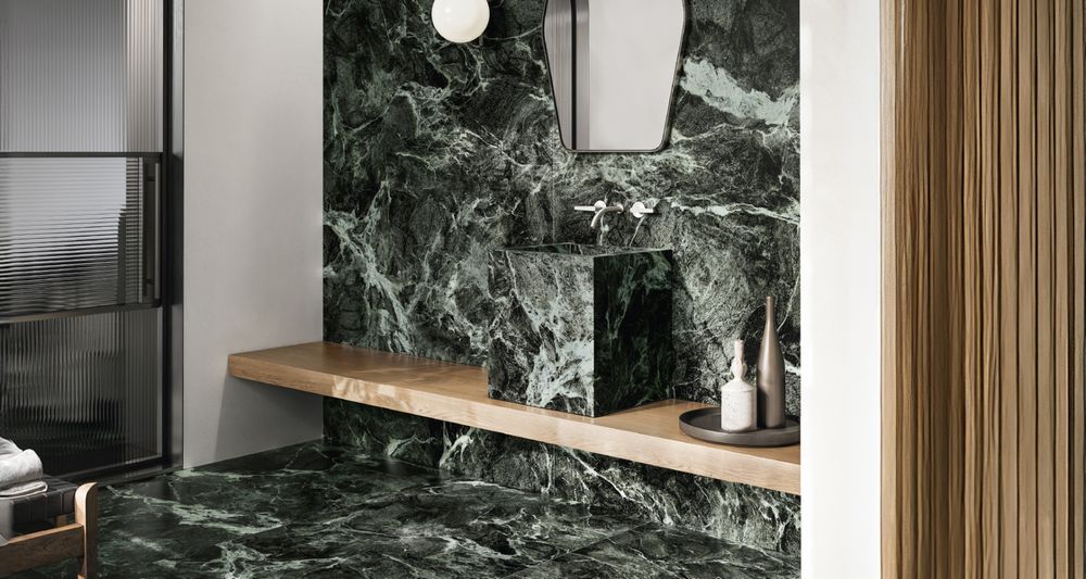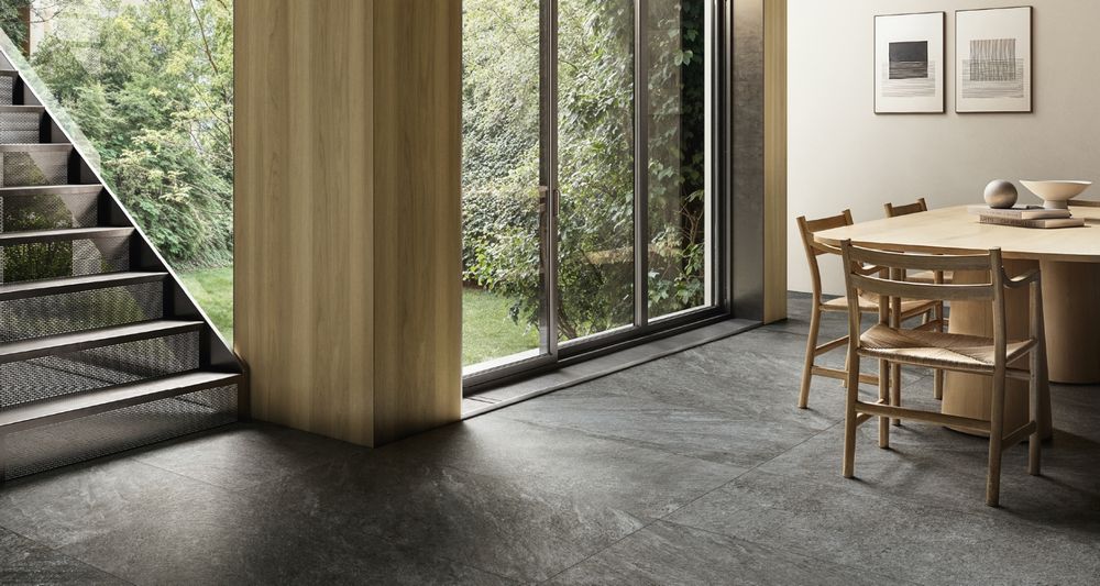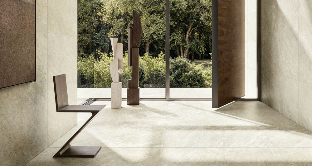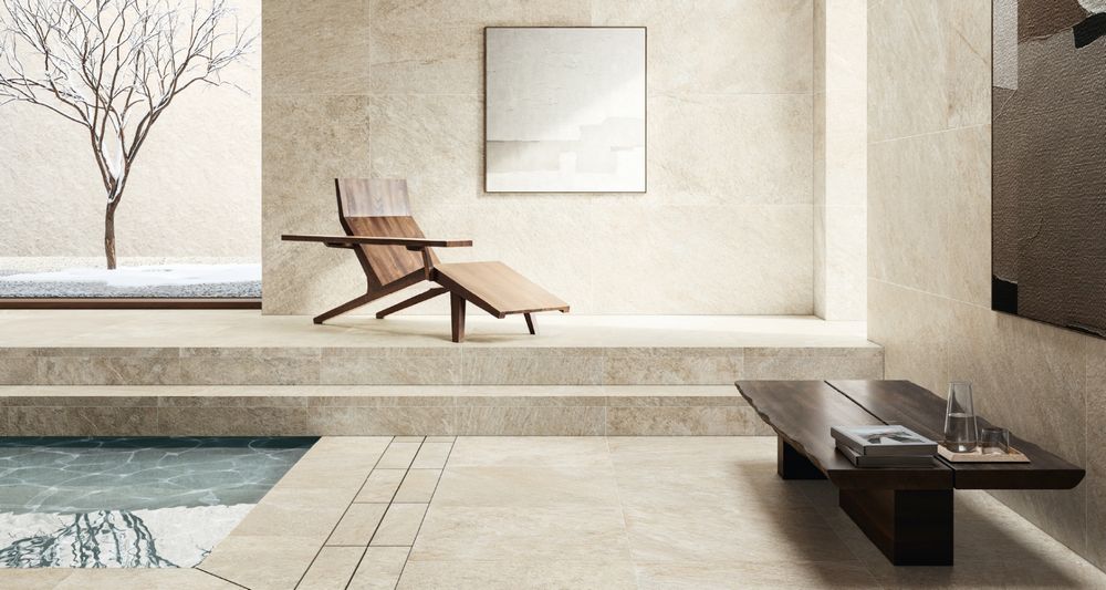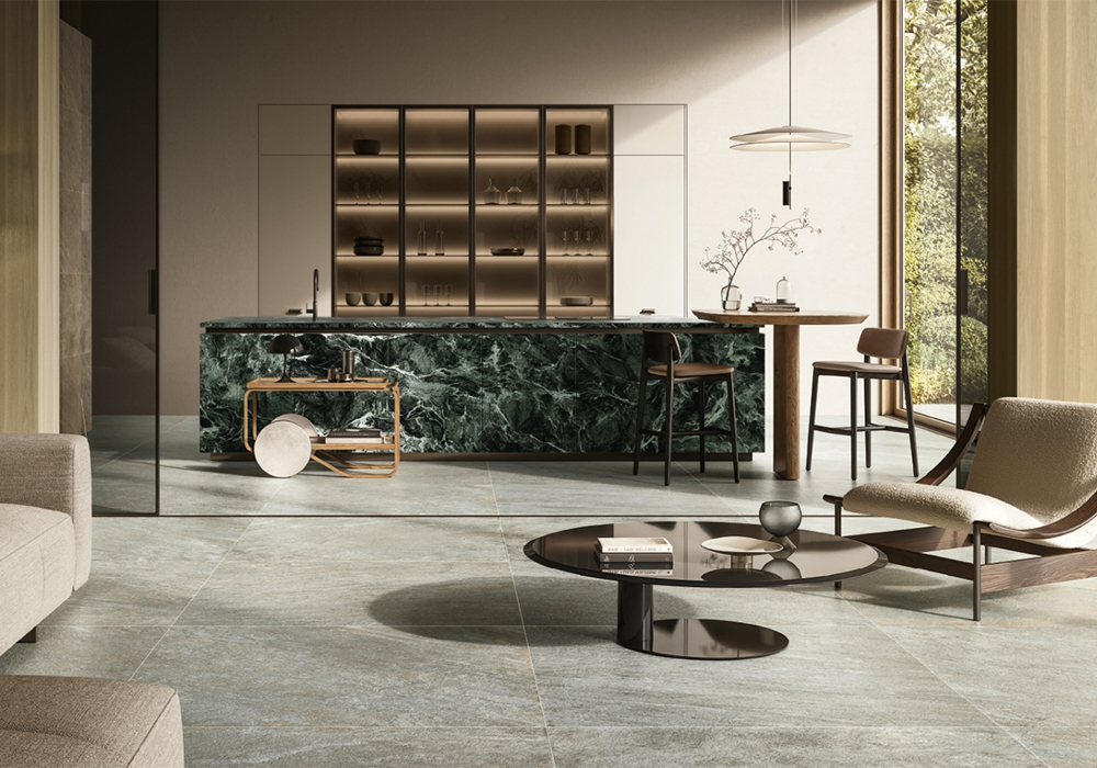 Уникальная эстетика кварцита здесь сочетается с превосходными эксплуатационными свойствами керамогранита — идеальное решение для современных дизайн-проектов. Керамогранит под камень доступен в форматах 60х60, 60х120, 120х120 см, керамогранит под дерево — в макси-формате 120х278 см, а керамогранит под мрамор представлен в форматах 80х160 и 120х278 см.