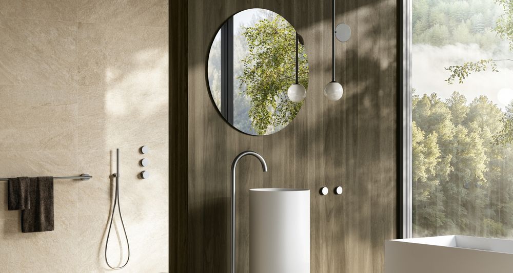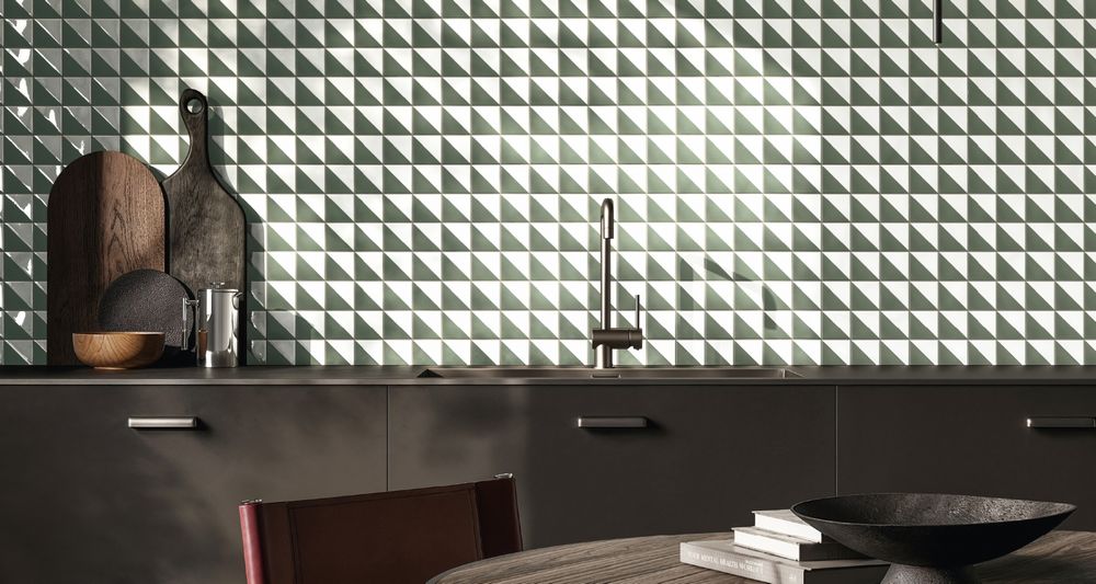 Декоративные элементы расширяют возможности для индивидуальных решений. Мозаика Magic Cuprum цвета меди с ярким зеркальным блеском придает пространству глубину и изысканность. Мозаика Enigma Petrol сочетает матовые и глянцевые треугольные фрагменты, создавая игру света и динамичный визуальный ритм. Эти декоры подчеркивают характер серии, превращая проекты в пространства, наполненные естественной гармонией и атмосферой утонченной роскоши.