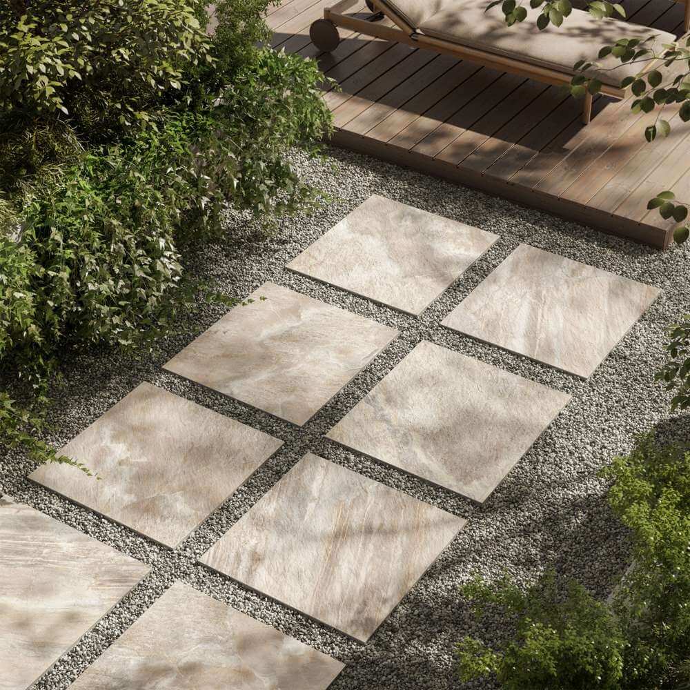 Современным архитектурным пространствам стиль рустик придает коллекция Magnetique Х2 от Italon, которая безупречно имитирует цветовую гамму и глубокие прожилки натурального камня. Уличный керамогранит толщиной 20 мм решает задачу оформления экстерьеров без сложной подготовки основания.