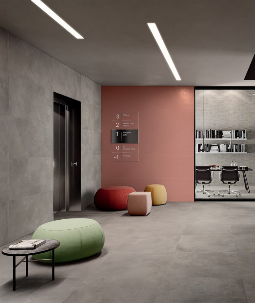 Пять нейтральных оттенков с уникальными цветовыми переходами — Блэк, Айрон, Сильвер, Даст и Пьюр — прекрасно сочетаются друг с другом и легко подстраиваются под любые решения. Нейтральные тона великолепно комбинируются с другими отделочными материалами, а также с насыщенными моноколорами из серии Серфейс. Широкая линейка форматов от 60х60 до 80х160 см и натуральная поверхность делают плитку под бетон подходящей для оформления домашних и коммерческих интерьеров в ярко-выраженном современном стиле, в эко-стиле и стиле лофт.